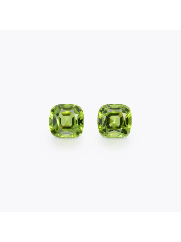 Pair of 2 Yellowish Green Peridots 7.72 carats square cushion cut 9.10x9.10x6.20mm from Pakistan