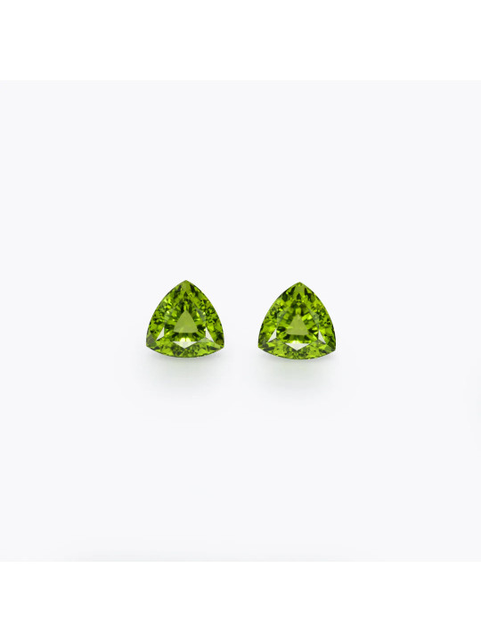 Par de 2 peridotos amarillo verdoso talla trilliant 12,39 quilates 11.50×11.50×7.40mm de Pakistán