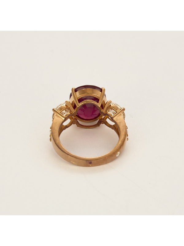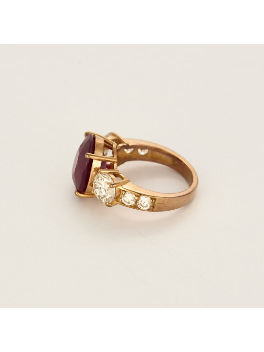 Anillo de oro amarillo de 18 quilates 750/1000 con rubíes de 7,55 quilates, diamantes de 2,72 quilates, talla 7,14 g.