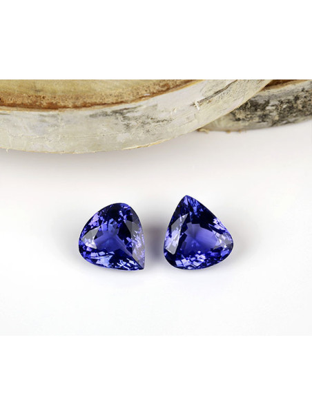 Paire de 2 Tanzanites violets 3.56 carats taille poire 10.50x9.70x3.50 mm de Tanzanie