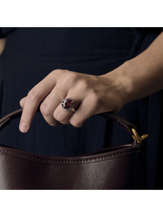 Bague or jaune 18 carats 750/1000 rubis 8.79cts diamants 0.50cts taille 7.75g