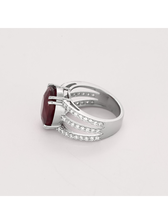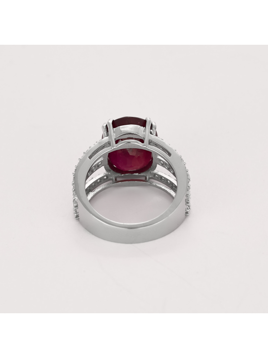 Bague or blanc 18 carats 750/1000 rubis 9.16cts diamants 0.77cts taille 8.55g
