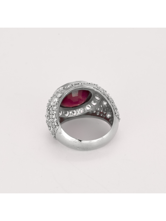 Bague or blanc 18 carats 750/1000 rubis 6.15cts diamants 3.01cts taille 9.54g