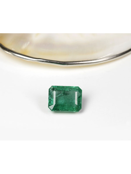 Gemme : Émeraude : Il s'agit d'une émeraude, une variété verte du minéral béryl, très prisée pour sa couleur unique.
