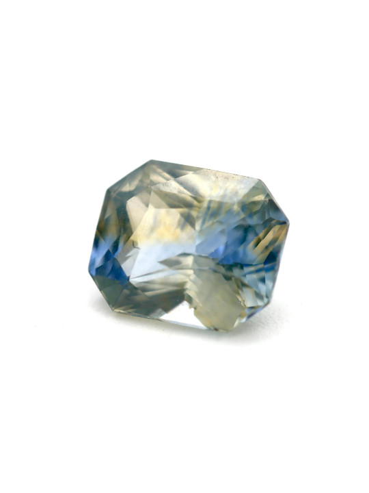 Saphir 1.055ct bicolore non chauffé taille émeraude 6.5x5.1x3mm du Sri Lanka