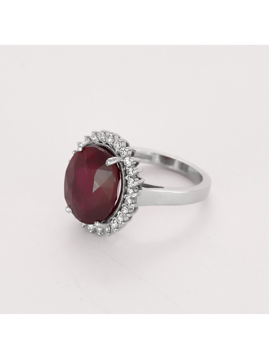 L'anello contiene un rubino non riscaldato di circa 1,04 carati e circa 0,60 carati di diamanti. Il rubino è tagliato a forma ovale, mentre i diamanti sono tagliati a forma rotonda.
