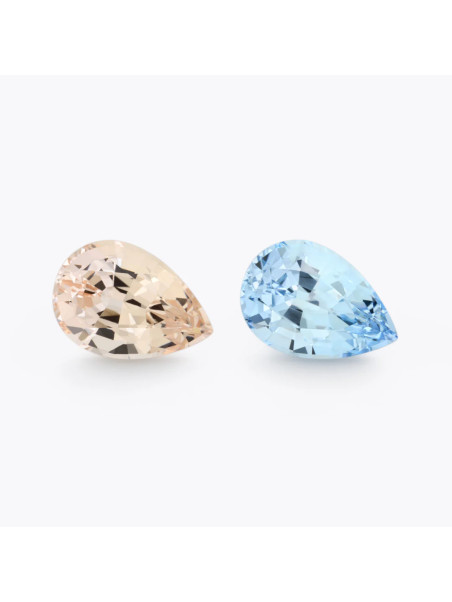Coppia di 2 Acquamarina e Morganite Berillo taglio a pera 7,93 carati 13.00×9.00×6.90mm dal Madagascar