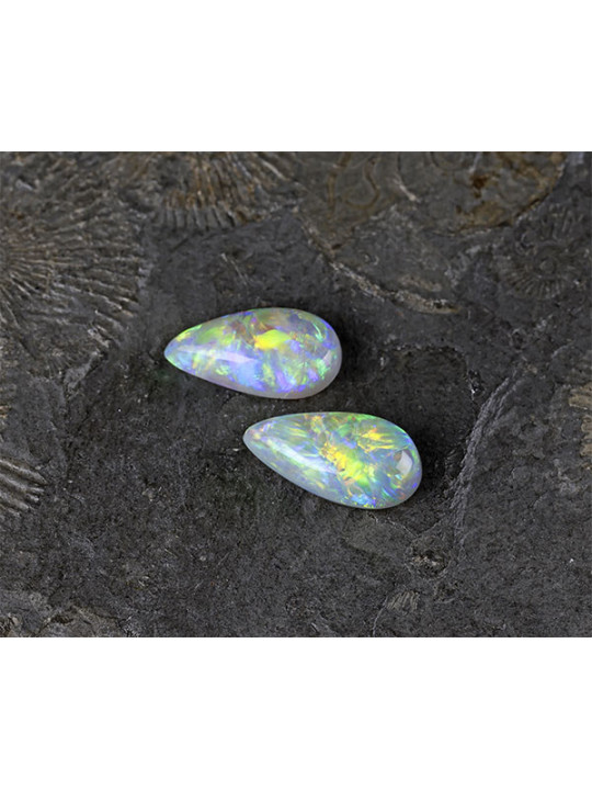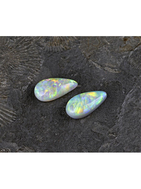 Questi cabochon di opale sono di dimensioni notevoli e provengono dall'Australia, una fonte rinomata di opali. Sono perfetti per creare gioielli come anelli, pendenti o orecchini. Gli opali sono apprezzati per i loro giochi di colore unici e la loro bellezza naturale e questi cabochon offrono un eccellente esempio di queste caratteristiche. Anche se la qualità del taglio è classificata come "buona", ciò non toglie nulla alla bellezza e al valore di questi opali australiani.