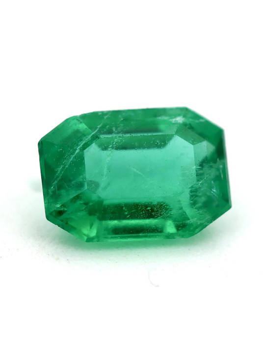 Qualità del taglio: molto buona: la qualità del taglio dello smeraldo è molto buona, il che significa che è tagliato in modo preciso e proporzionato per massimizzare la sua brillantezza.